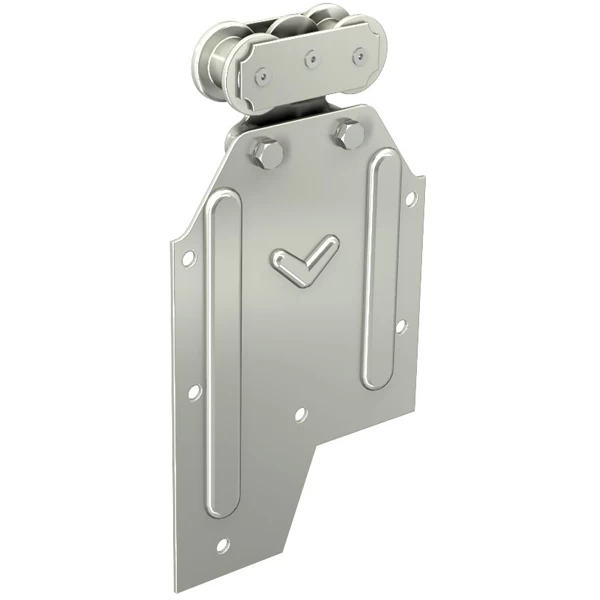 - Montures de fixation sur plat, avec deux galets en acier montés sur cage à rouleaux.